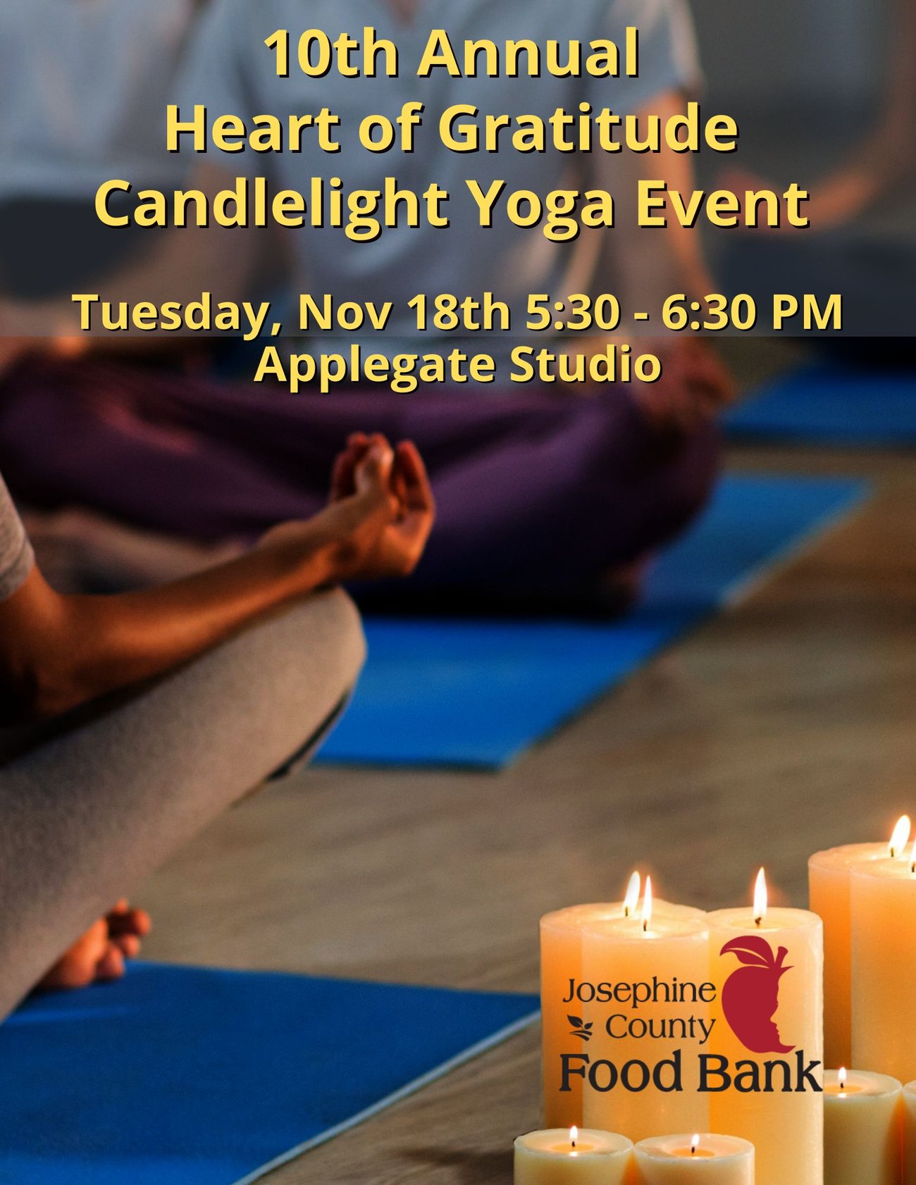 Please join your favorite yoga instructors to offer gratitude during this special yoga event. Our all levels program will feature gentle asanas in celebration of the season of giving which will conclude with a sound bath. We request you share two non-perishable food items as a donation to the Josephine County Food Bank. Food barrels will be found at either entrance of the Club and will be available for donations beginning early November through the end of the month. All Members and Guests are welcome to join.
